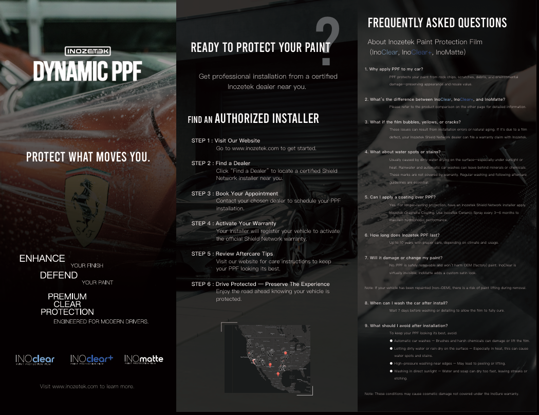 Whether you're going for a stealthy transformation or simply want to stand out with a refined satin finish, InoMatte delivers protection with unmistakable style—backed by a 10-year limited warranty against delamination, yellowing, bubbling, and cracking.